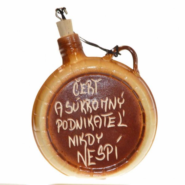 Keramická ploskačka s nápisom - Čert a súkromný podnikateľ nikdy nespí.