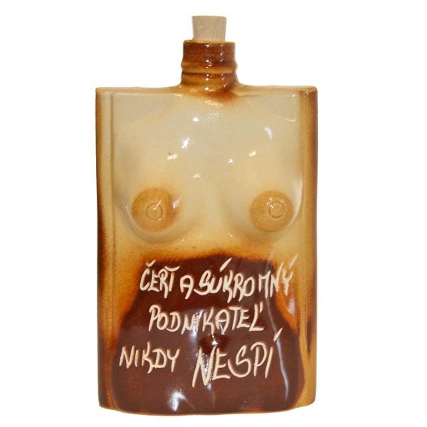 Keramická ploskačka telo ženy - Čert a súkromný podnikateľ nikdy nespí je originálnym a humorným darčekom pre všetkých pánov, ktorí si radi vychutnajú výborný aperitív z kvalitnej nádoby na alkohol.