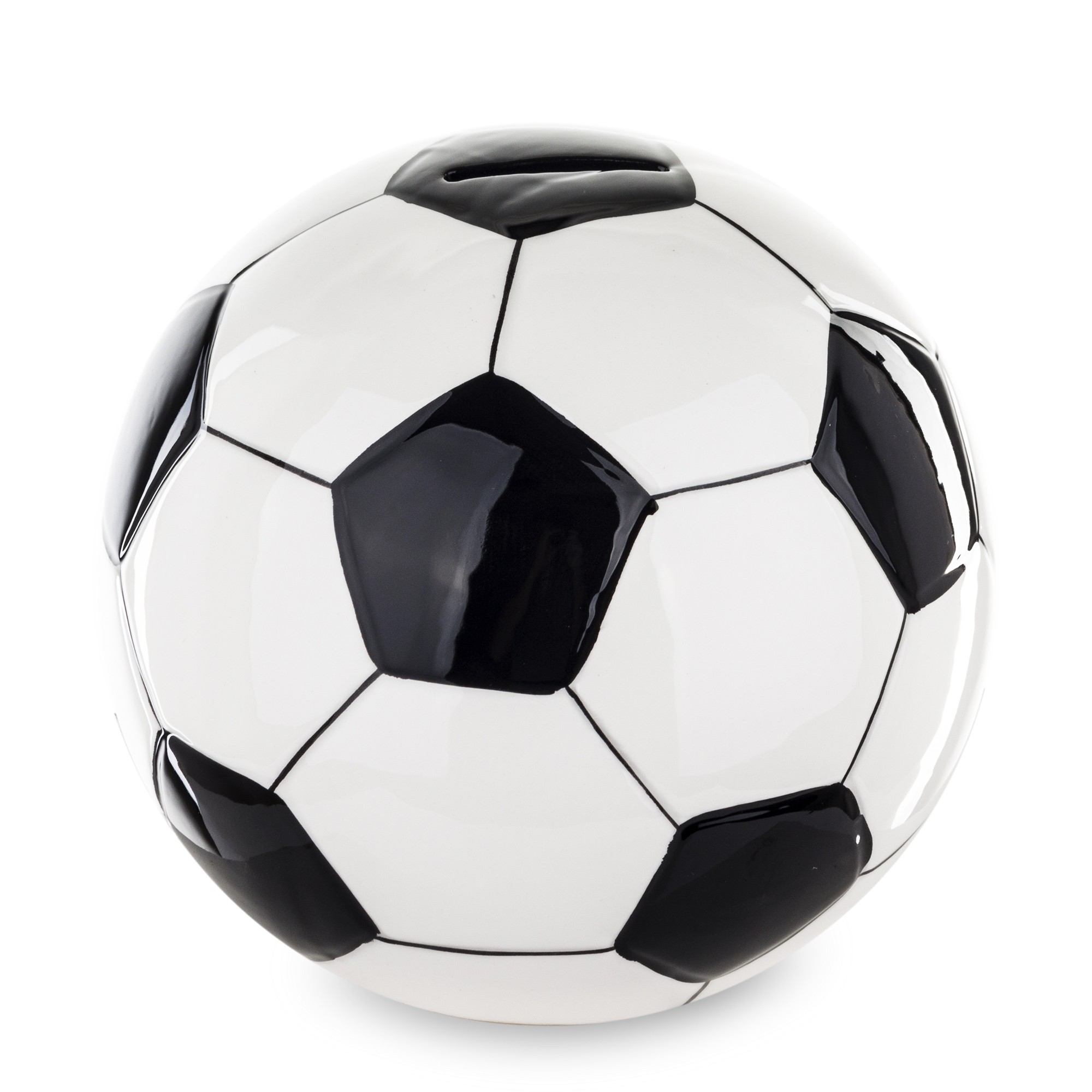 Keramická pokladnička lopta bielo čierna je praktickým darčekom pre deti.