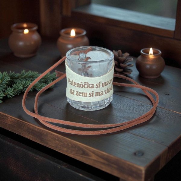 Vyrobený je z kvalitného číreho skla a doplnený o kožený obal s precíznym gravírovaním. Vďaka šnúrke na krk máš svoj obľúbený štamperlík stále po ruke – ideálny doplnok na svadby, firemné akcie aj výlety s partiou.