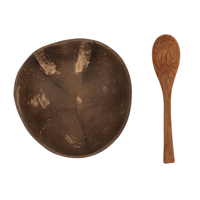 Kokosová miska s lyžičkou – prírodný set 2 ks