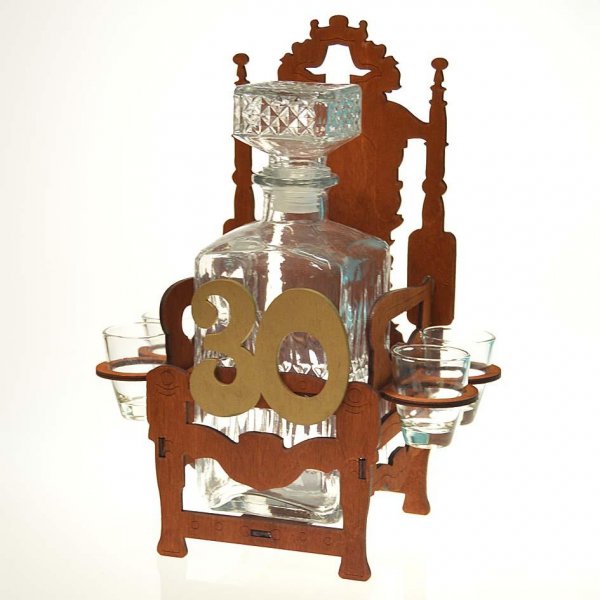 Kráľovské kreslo s fľaškou a štamperlíkmi k 30 narodeninám