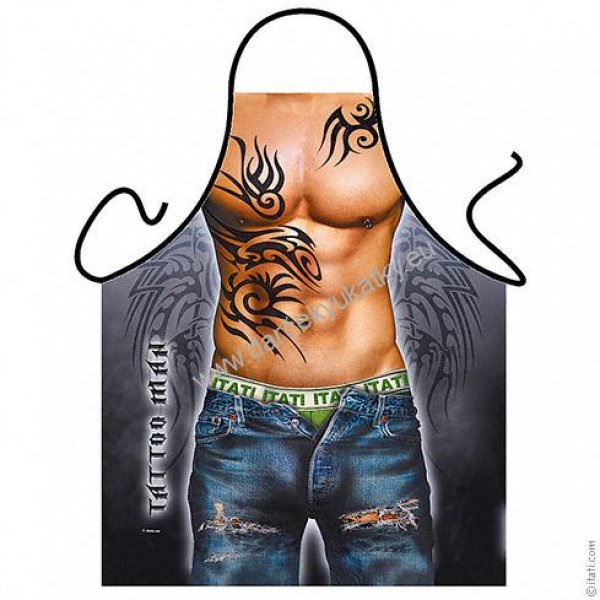 Vtipná kuchynská zástera - Potetovaný je sexi darčekom pre každého oslávenca k narodeninám.