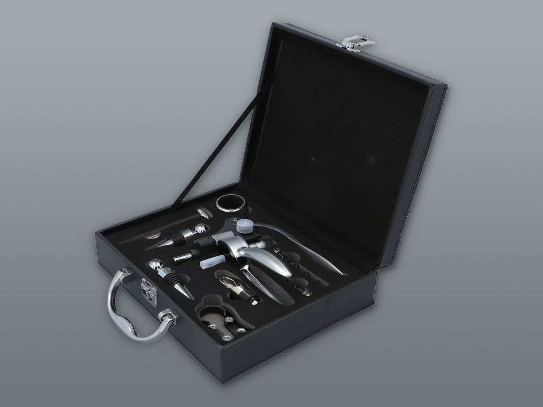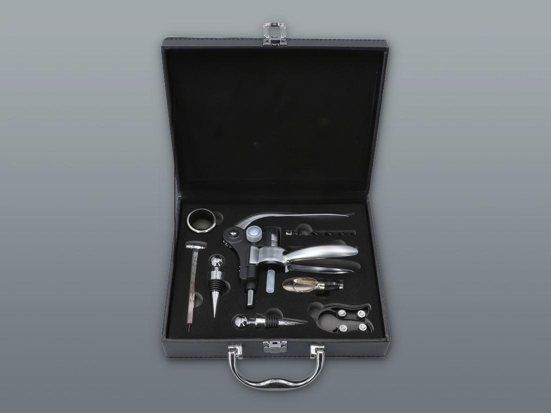 Sada príslušenstva k vínu, ktorá je v prevedení čierného kufríku