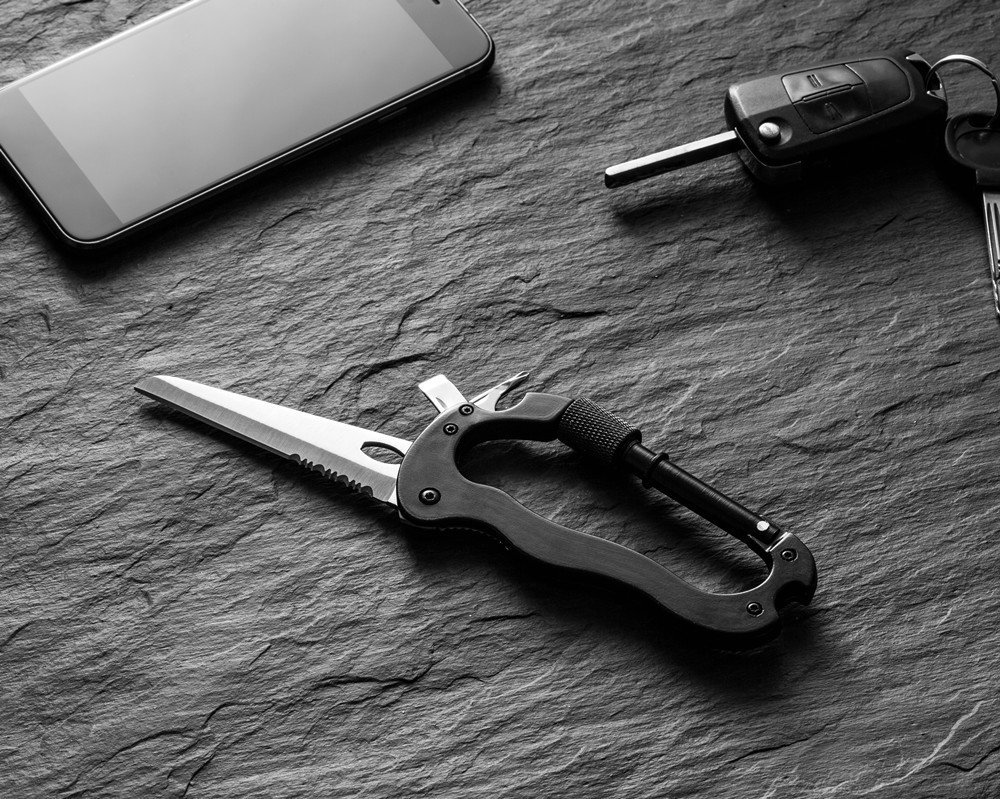 - Ak sa chystáte čeliť tomuto svetu sami, mali by ste mať po ruke náš multitaskingový karaniner na prežitie. Skvelý ako prívesok na kľúče od auta alebo výbavy na bicykel.