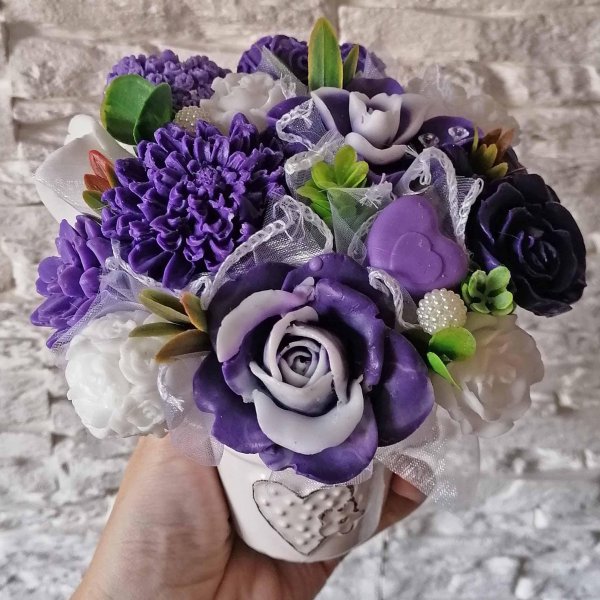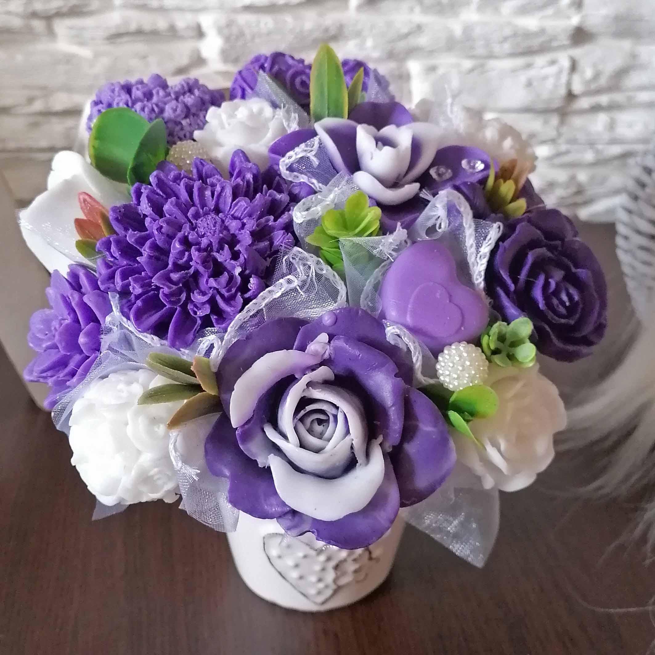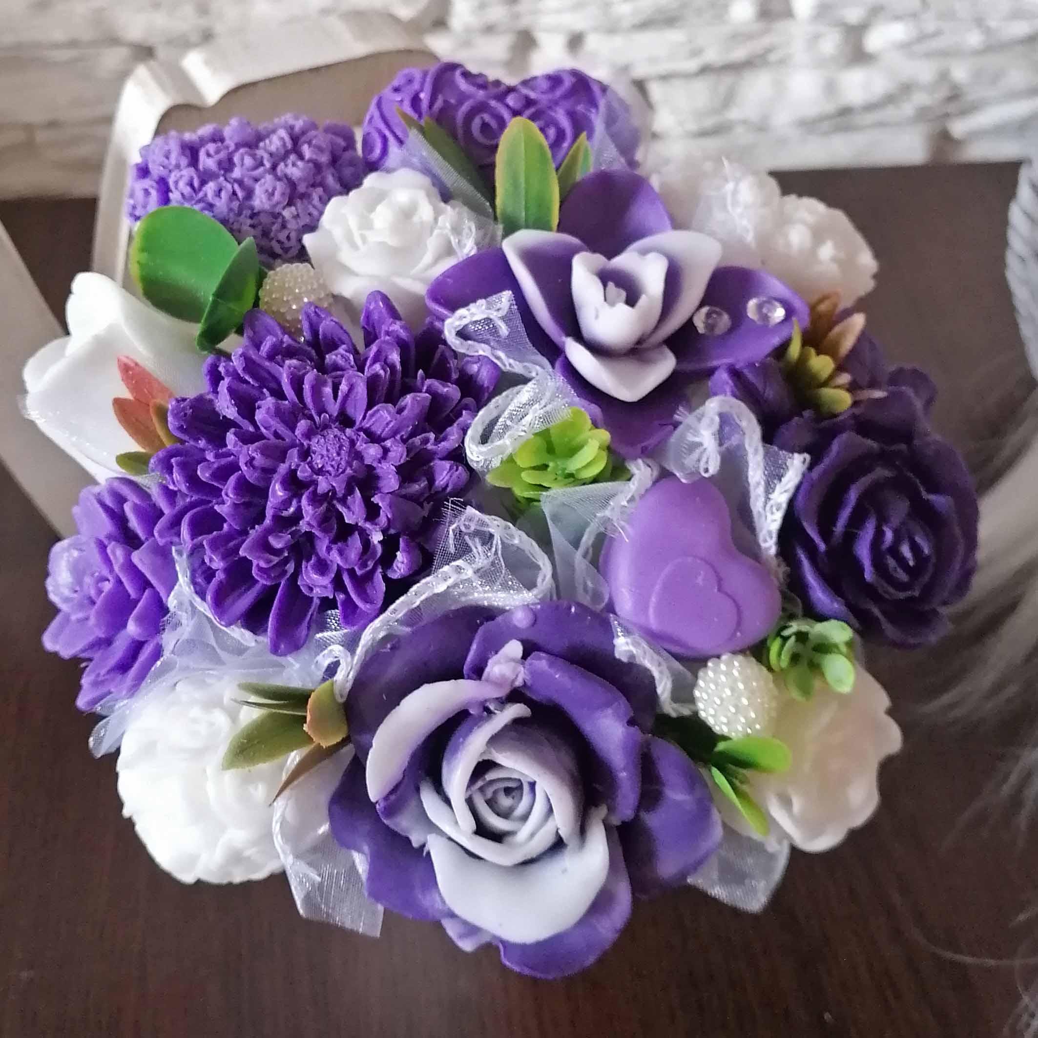 Mydlová kytica K - Fialová , biela