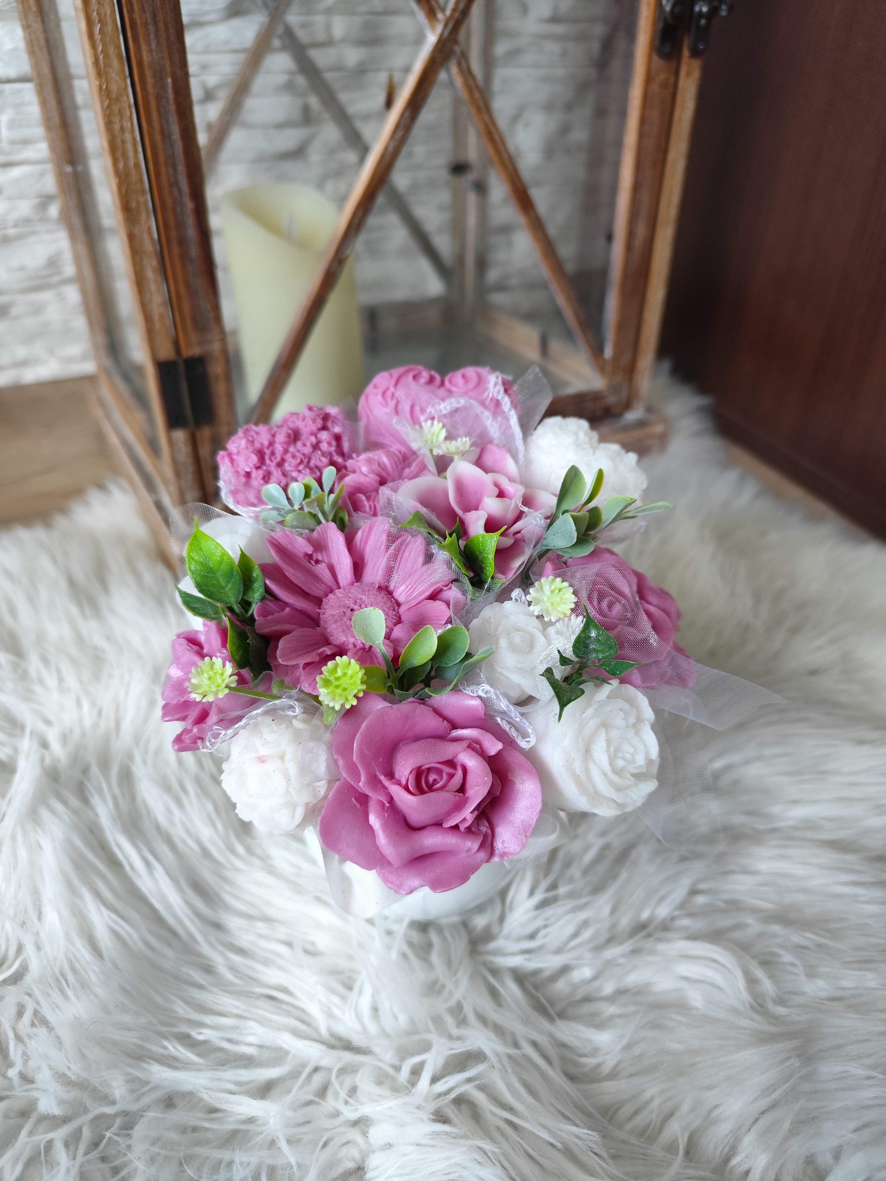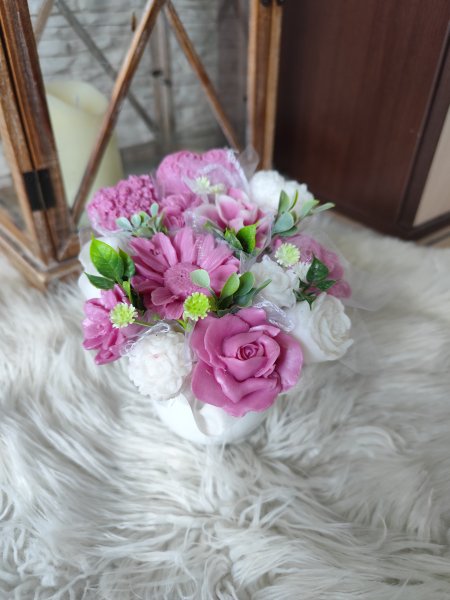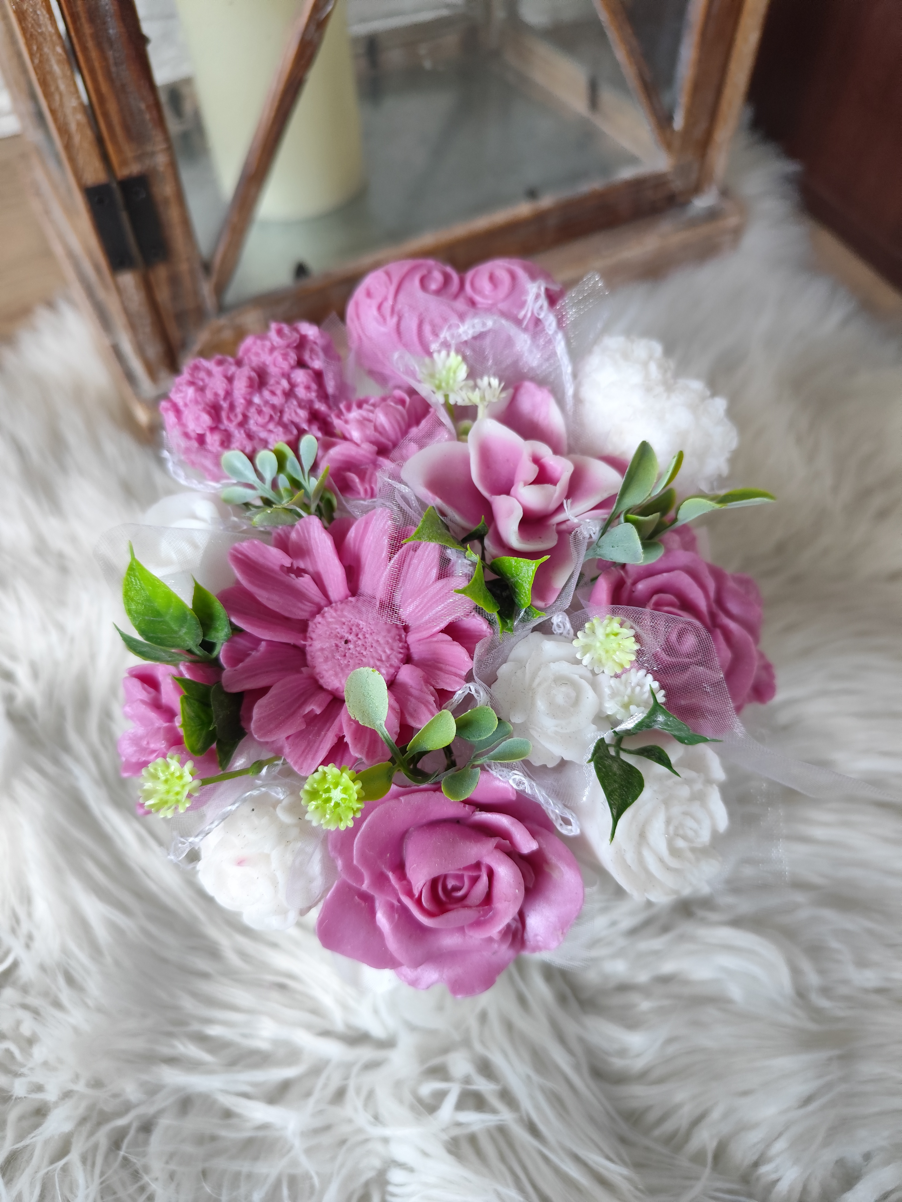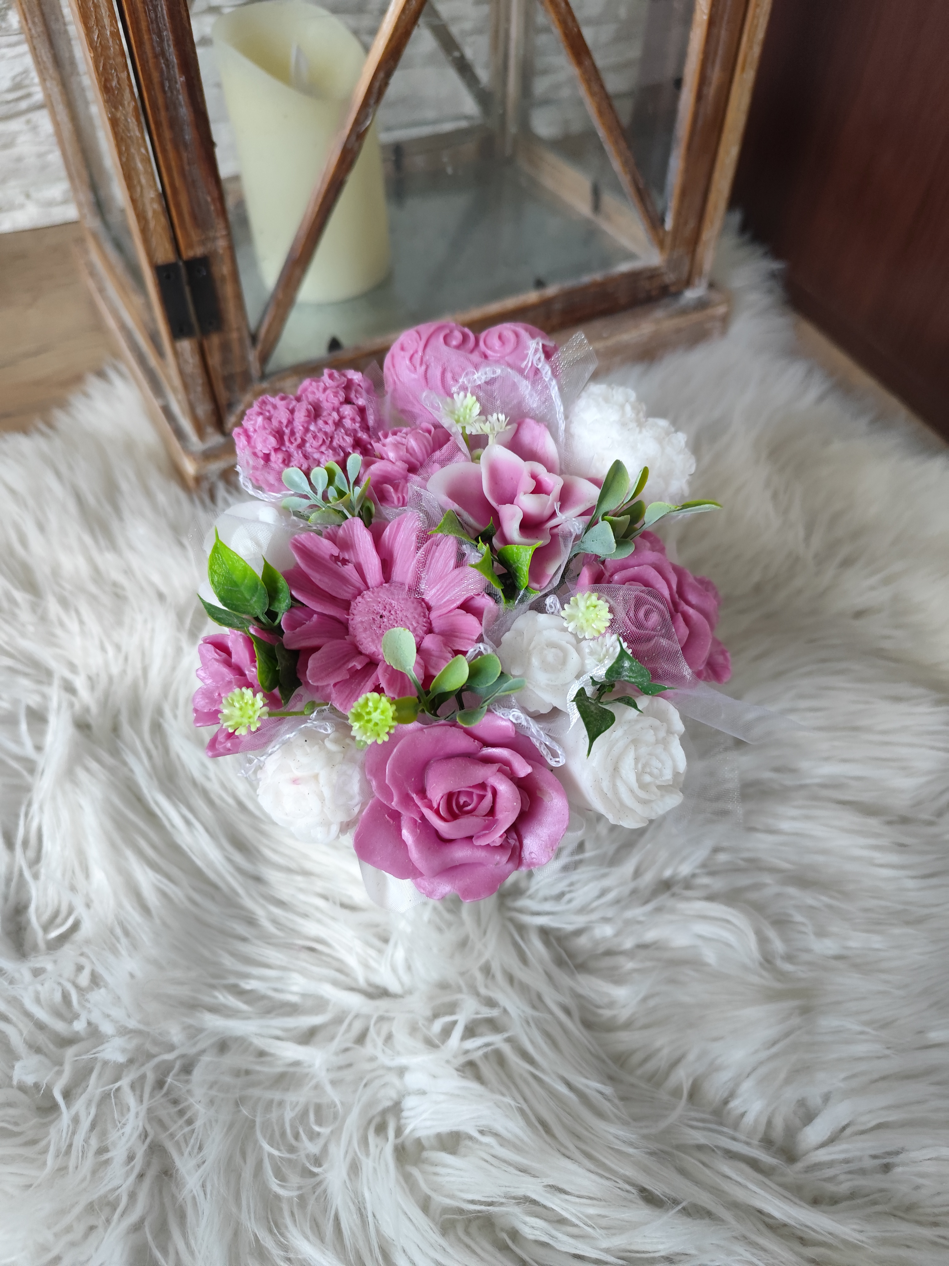 Mydlová kytica je jedinečná dekorácia a originálny darček, ktorý spája krásu kvetov s praktickosťou mydla. Každý kvet je starostlivo vyrobený z mydlovej hmoty, vďaka čomu si kytica zachováva svoj nádherný vzhľad a príjemnú vôňu po dlhý čas. Ideálna voľba pre narodeniny, meniny, svadby či len tak pre potešenie.