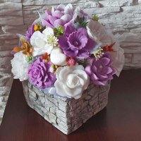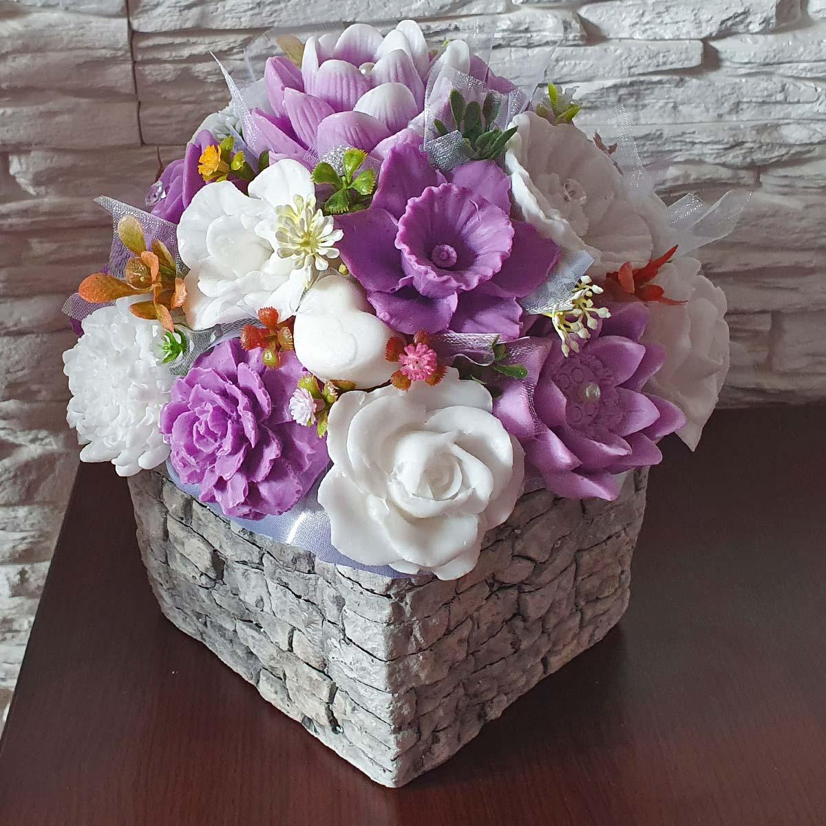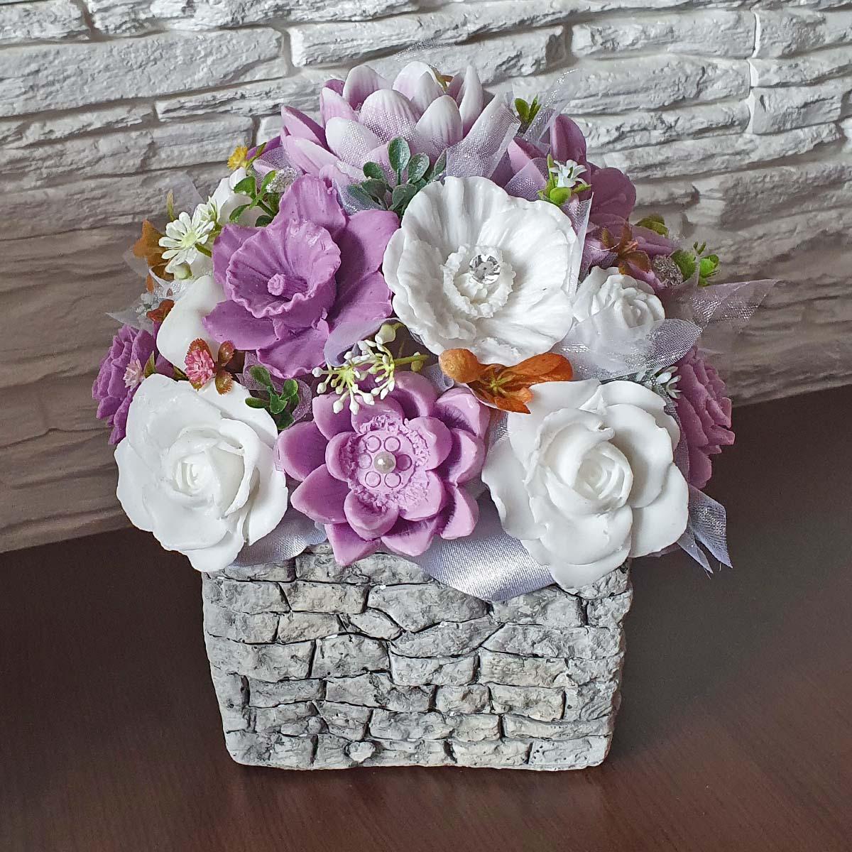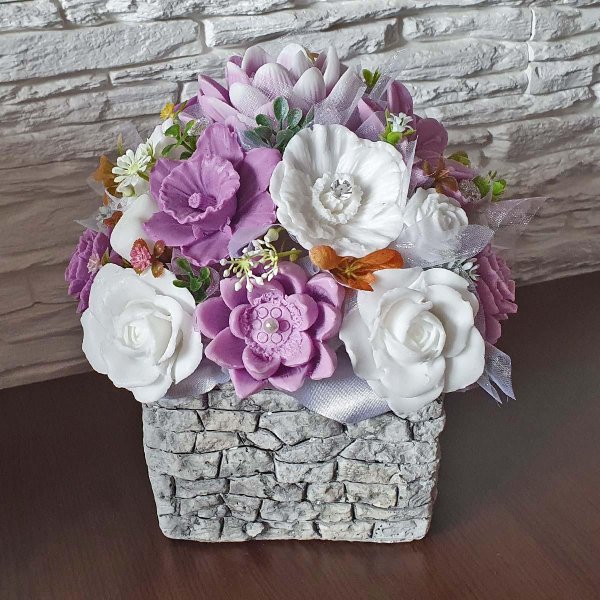 Mydlová kytica - Staro ružová v štvorcovom kvetináči