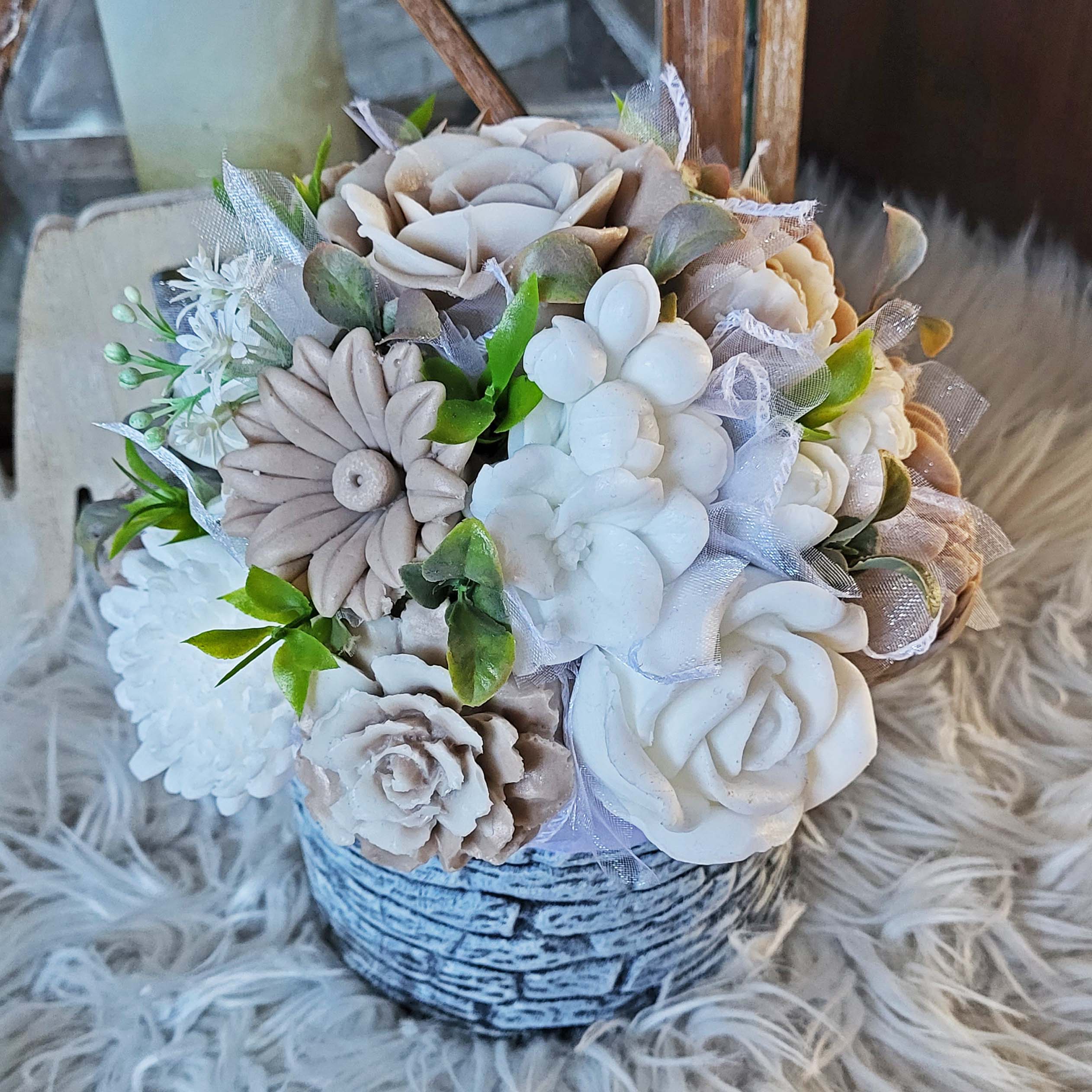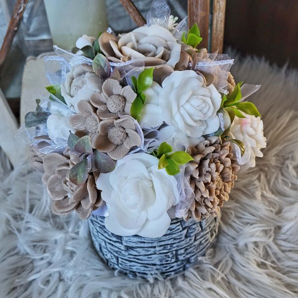 Mydlová kytica v keramickom kvetináči - Svetlo hnedá