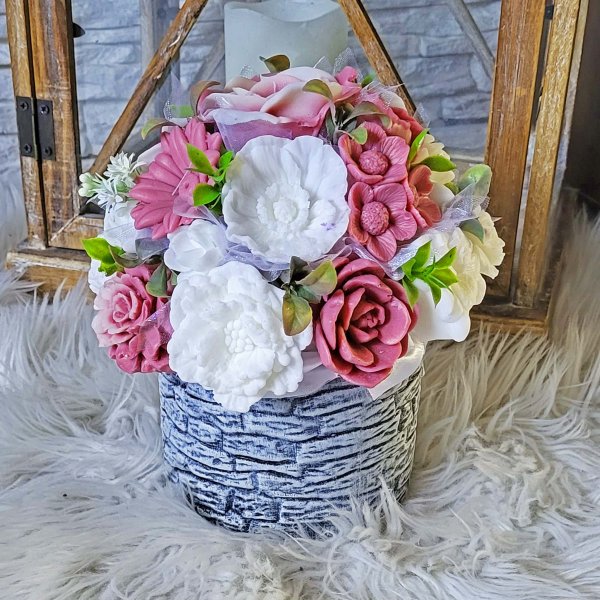 Už ste niekedy hľadali darček, ktorý by bol nielen krásny, ale aj praktický a trvácny? Ponúkame vám ideálnu voľbu - Mydlovú kyticu v keramickom kvetináči. Tento unikátny kúsok nie je len obyčajný darček. Je to skúsenosť, ktorá premení každodenné umývanie na luxusný wellness rituál. Mydlová kytica je vytvorená z jemných mydiel v tvare kvetov, ktoré sú aromaticky voňavé a sú zasadené v elegantnom keramickom kvetináči. Každý kvet je ručne vyrobený a starostlivo navrhnutý, aby vytvoril dokonalý vizuálny efekt. Na rozdiel od tradičných kvetových darčekov, mydlová kytica neuvädne. Svojou krásou a vôňou poteší darovanú osobu dlhší čas. Tým sa stáva nielen ekonomickou, ale aj ekologickou voľbou.