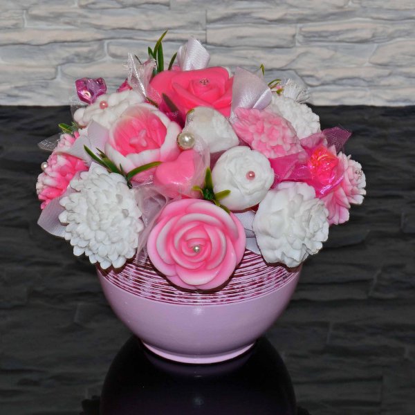 Mydlová kytica v kvetináči je voňavý darček ku každej príležitosti a pre každú ženu.