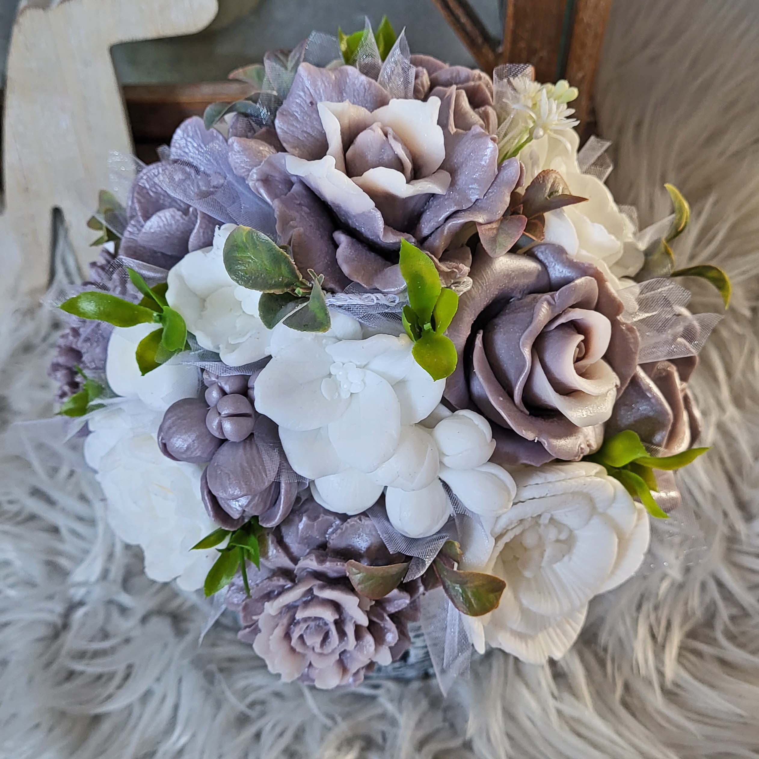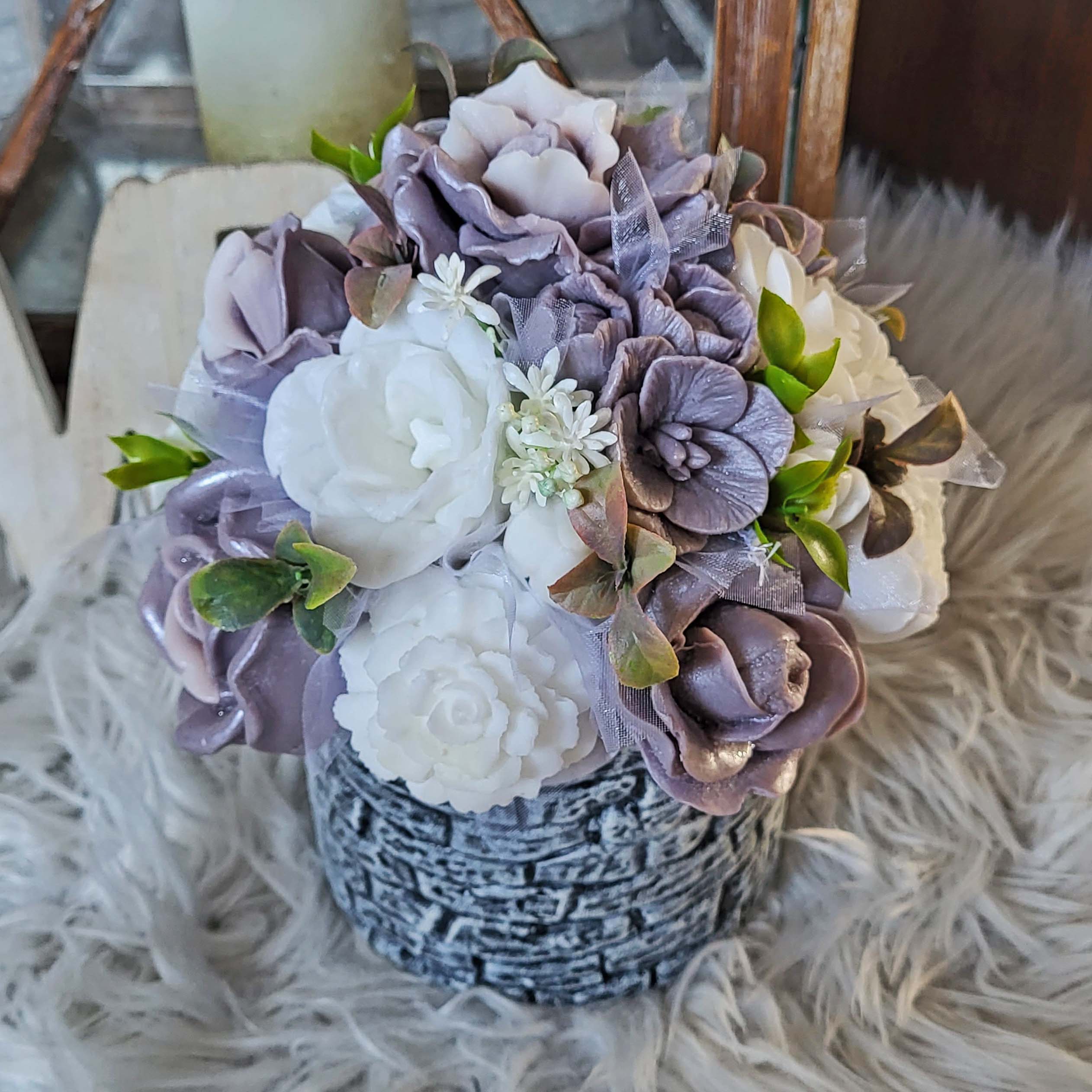Mydlová kytica v keramickom kvetináči - Sivo-biela