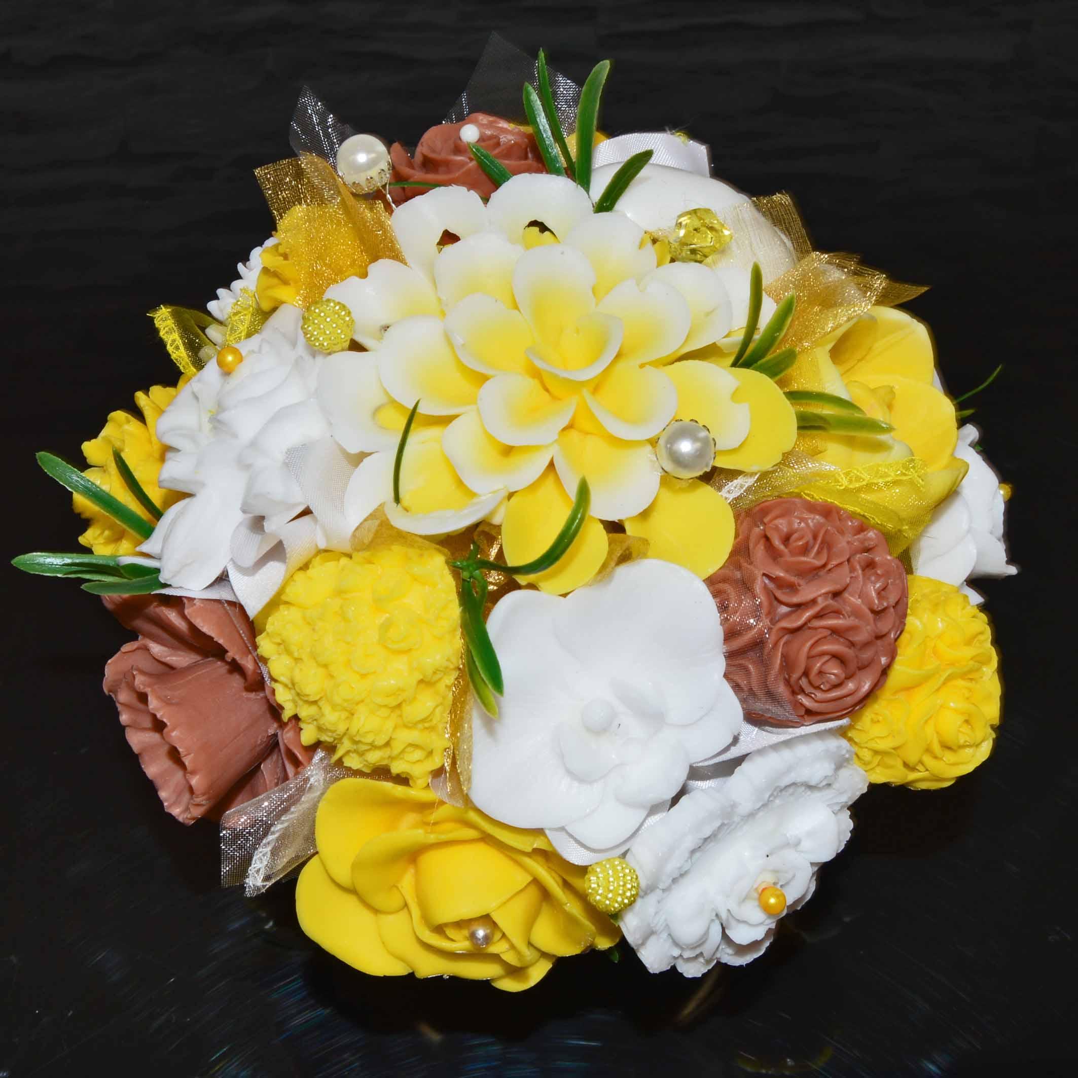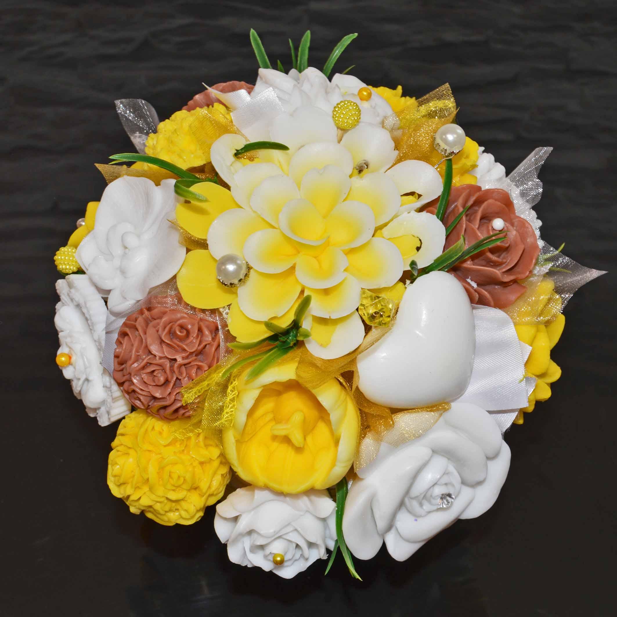 Mydlová Kytica v keramickom kvetináči - žltá, hnedá, biela