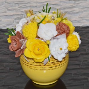 Naše mýdlové kytice sú ručne vyrábané aranžmány z mydlových kvetov, ktoré vyzerajú ako živé – no vydržia roky.