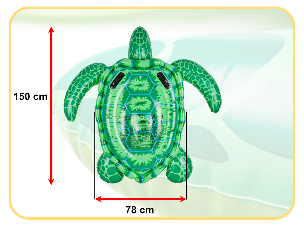 Rovnako ako náš korytnačí matrac miluje vodné kúpele. Je hladný po dobrodružstve a zábave. Čas strávený vo vode ho nikdy neomrzí. Túto korytnačku nie je potrebné kŕmiť. Živí sa len radosťou, ktorá pramení zo zábavy so svojimi majiteľmi. Naša korytnačka je nielen ľahšia ako skutočná korytnačka, ale aj oveľa väčšia. Je dlhá 150 cm a môžete na nej plávať bez obáv, že si ublížite. Vyrobené z odolného PVC materiálu, prežije mnoho fascinujúcich dobrodružstiev.