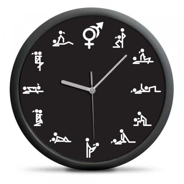 Nástenné hodiny so sexuálnymi pozíciami namiesto čísel.
