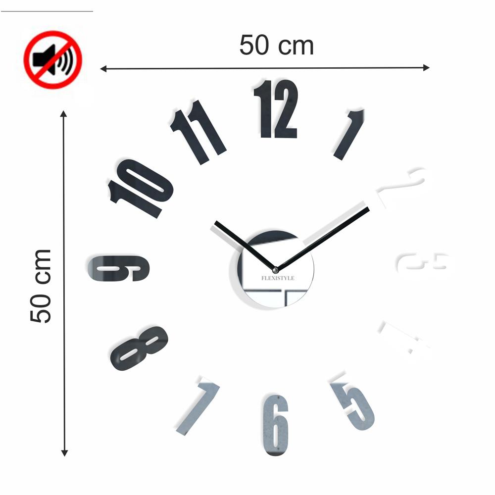 Nástenné samolepiace hodiny zrkadlo 50 - 75 cm