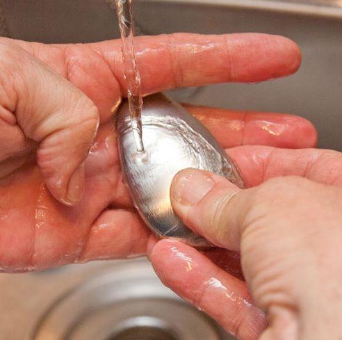 Na rozdiel od bežného mydla sa používa oxido-redukcia, prirodzená vlastnosť ocele, naodstránenie silného zápachu: cibuľa, cesnak, ryby, dokonca nikotín.
