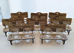 Drevená lavička so štamprlíkmi - Na zdravie!
