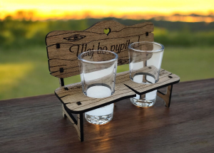 Drevená lavička so štamprlíkmi - Vypi bo naľate!