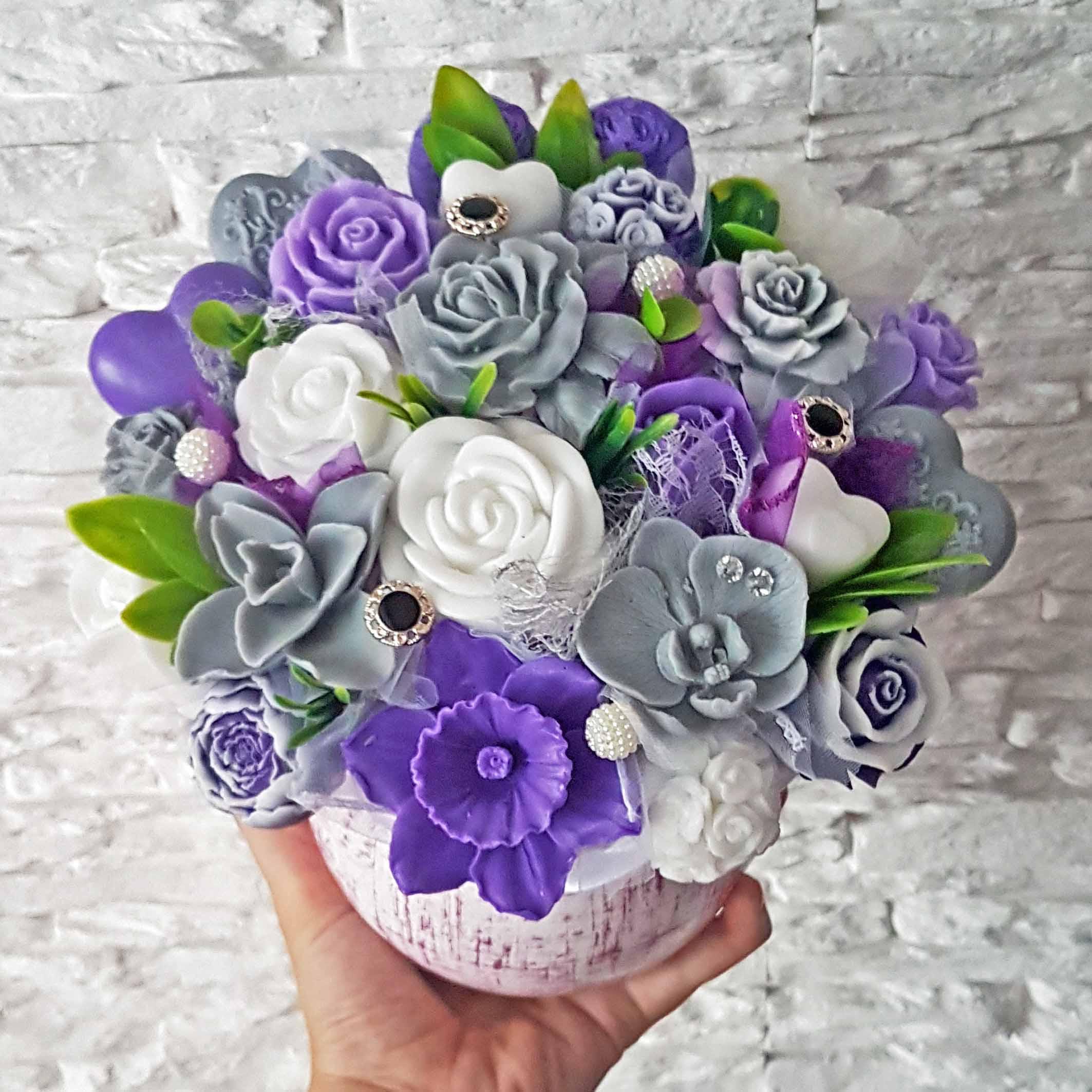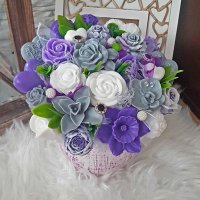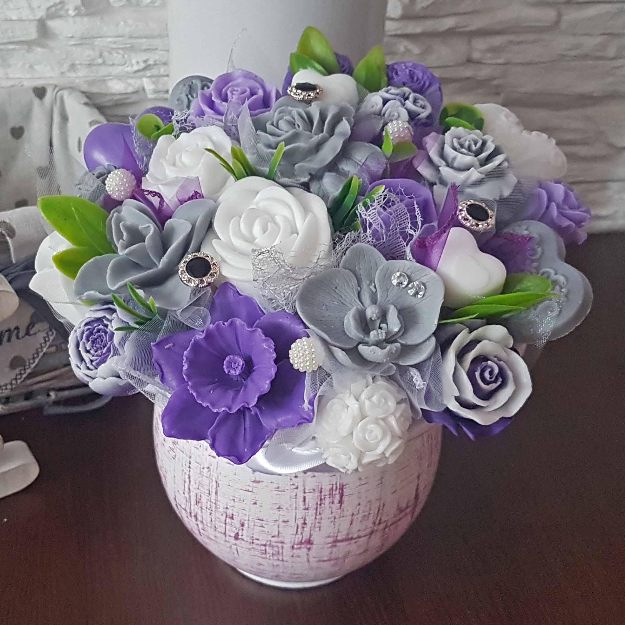 Predstavujeme Vám originálnu mydlovú kyticu - dokonalú kombináciu elegancie a užitočnosti, ktorá oslní svojím vzhľadom a vôňou. Táto ručne vyrábaná kytica, v nádherných odtieňoch fialovej a sivej, je viac než len obyčajný darček. Je to prejav pozornosti, ktorý zanechá trvalý dojem.