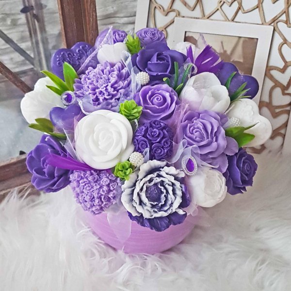 Predstavte si úsmev na tvári Vašej drahej polovičky, mamy, sestry alebo kamarátky, keď v ich rukách pristane niečo tak jedinečné a krásne, ako naša Originálna mydlová kytica v očarujúcich odtieňoch fialovej a bielej. Tento ručne vyrábaný darček je viac než len kytica; je to dokonalý spôsob, ako vyjadriť svoje pocity, oceniť blízkych a zanechať v ich srdciach trvalú spomienku.