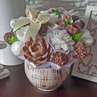 Nechajte sa uniesť jemnou vôňou mydlových kvetov, ktoré nielen krásne vyzerajú, ale aj vnášajú do každého domova nádych elegancie a pohody. Na rozdiel od tradičných kvetov, naše mydlové kytice zostanú krásne a voňavé dlho po tom, ako by bežné kvety uvädli. Je to darček, ktorý trvá a pripomína vašu starostlivosť a lásku s každým pohľadom.