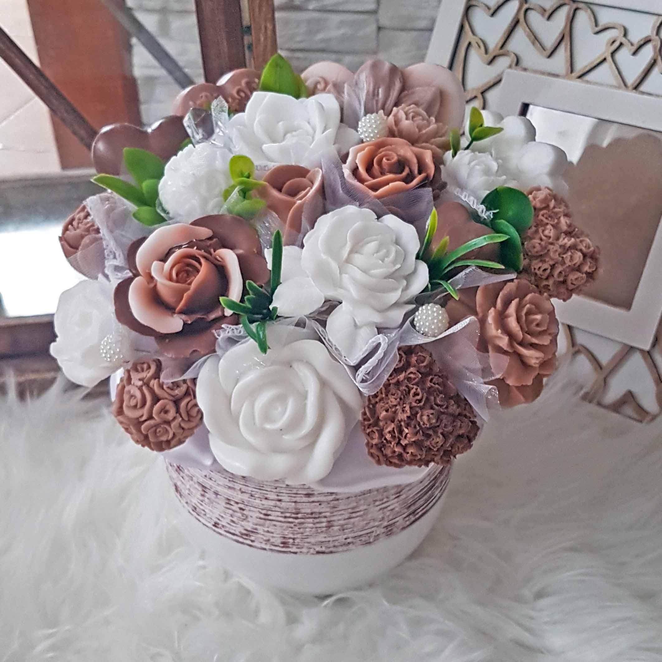 Originálna mydlová kytica - hnedá, biela