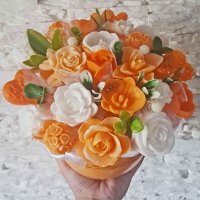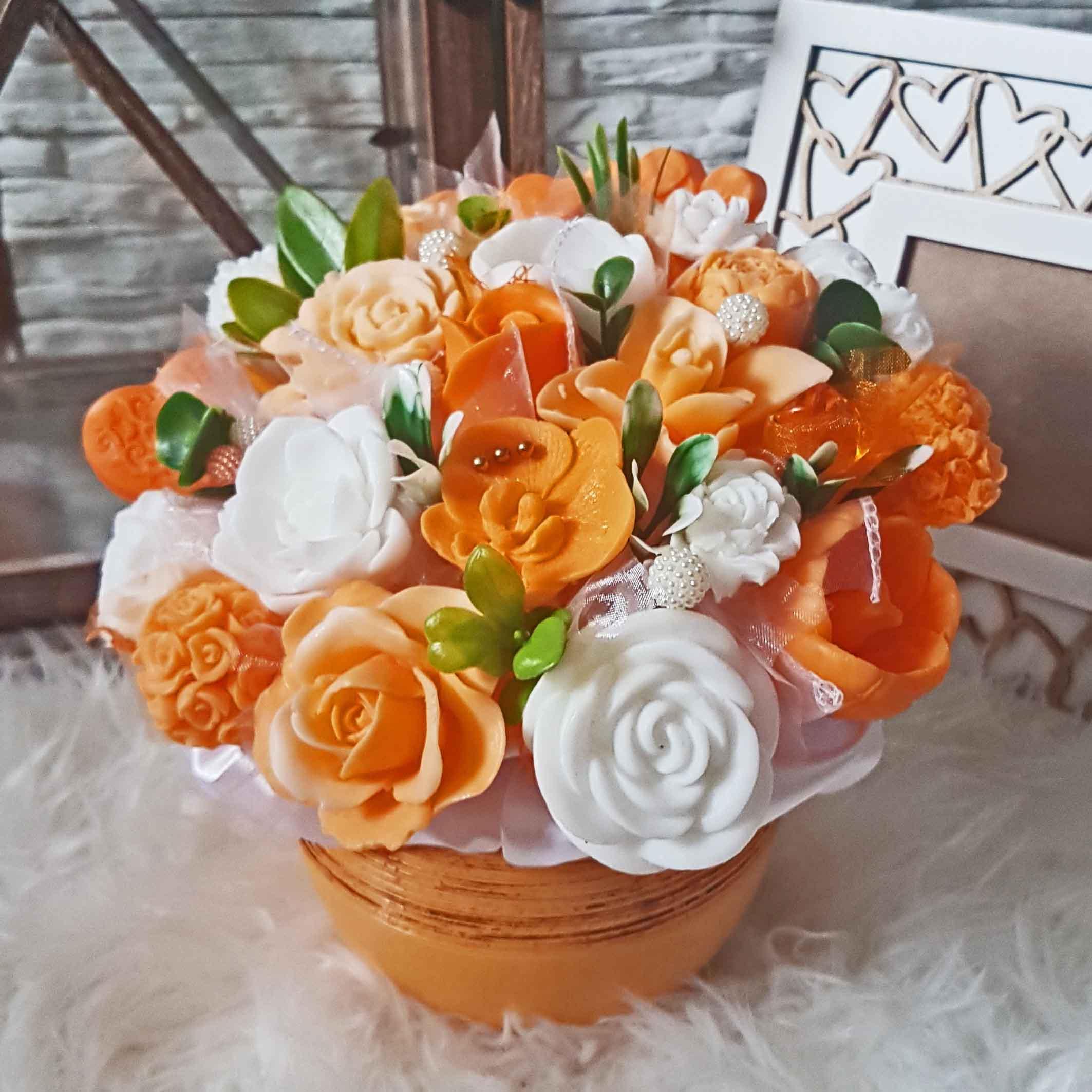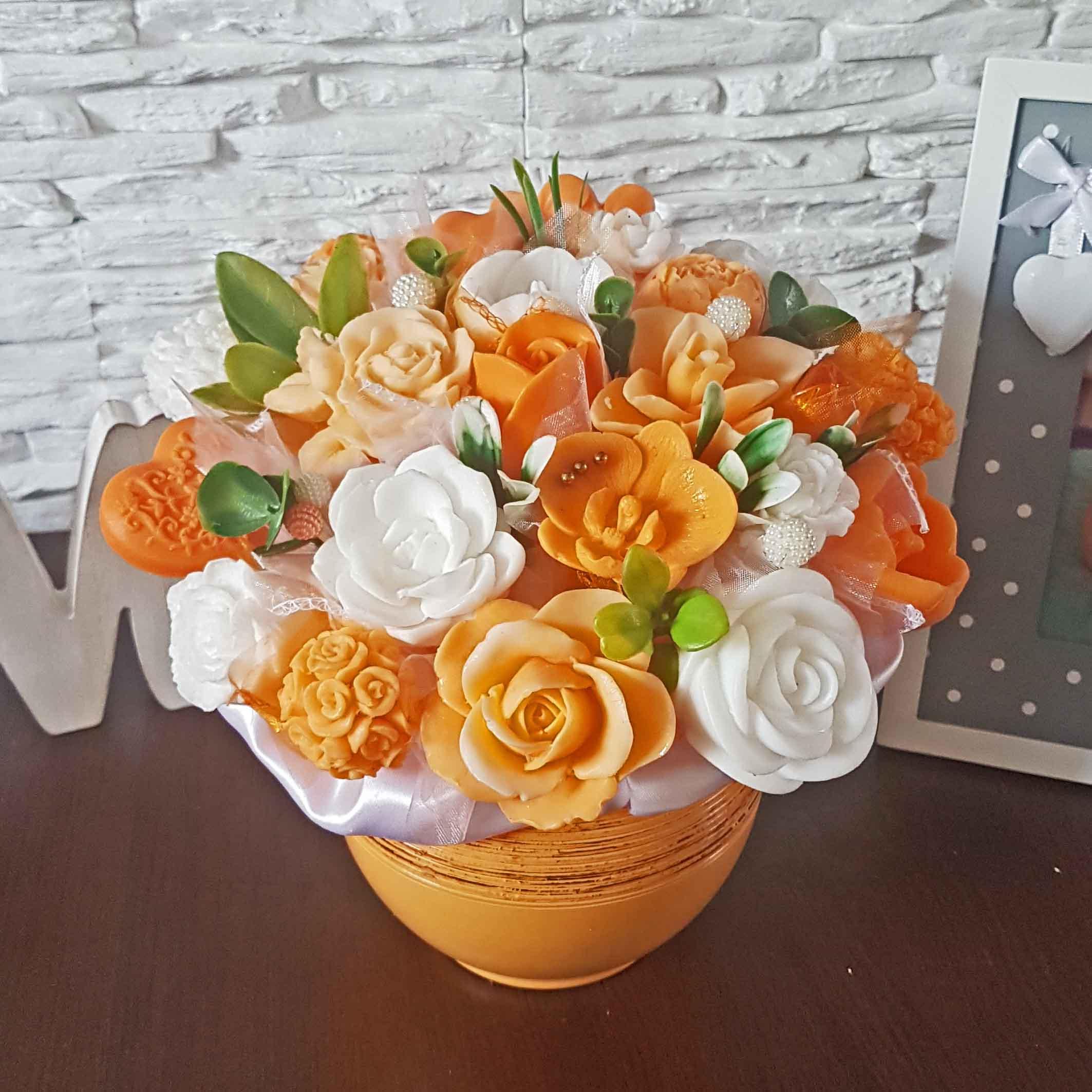 Originálna mydlová kytica - oranžová, biela