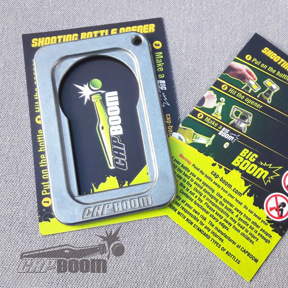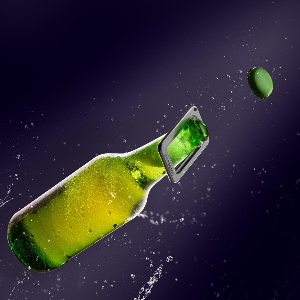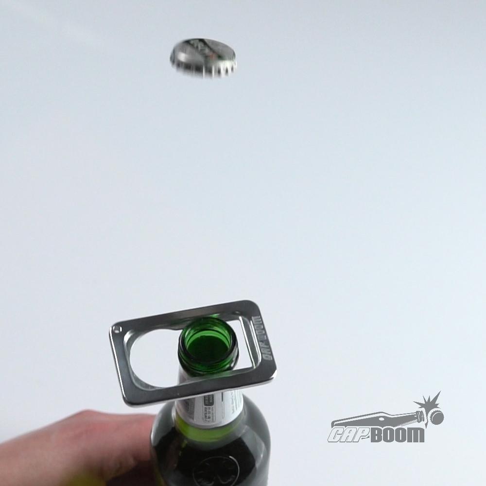 • Otvárač na fľaše, ktorý otvára fľaše s pôsobivým BOOM!