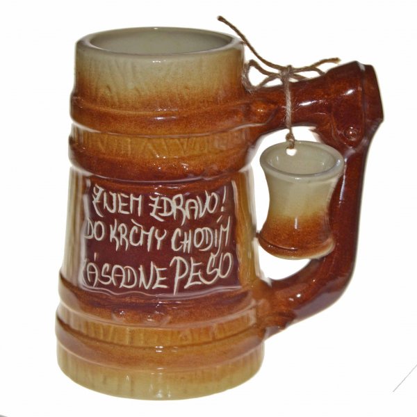 Pivový pohár so štamperlíkom - Žijem zdravo! Do krčmy chodím zásadne pešo