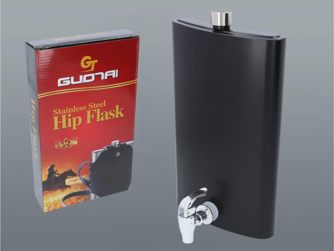Predstavujeme štýlovú ploškačku (fľaša) s praktickým výpustom / kohútikom (kranikom), ktorá vám umožňuje pohodlne nalievať nápoj bez potreby odskrutkovať viečko.