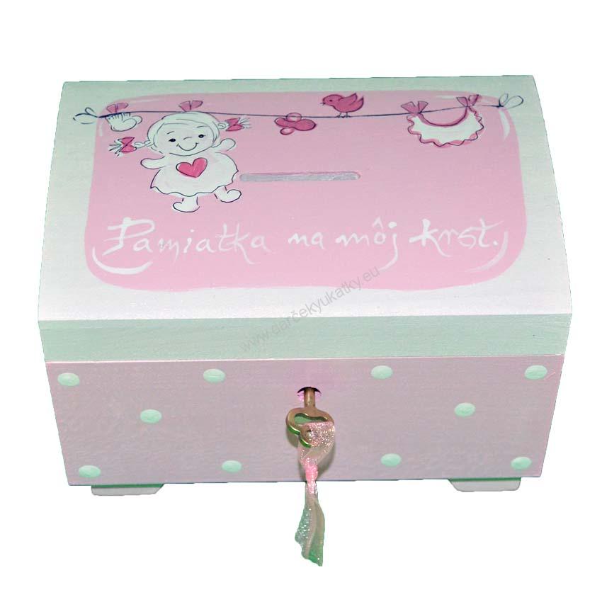 Hľadáte darček ku krstu? Ak máte radi niečo výnimočne táto pokladnička je ten pravý darček pre dievčatko. Drevená pokladnička pre dievčatko ku krstu.