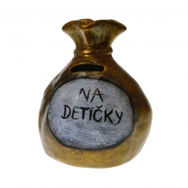 Krásna keramická pokladnička s nápisom: na detičky je skvelý darček pre novomanželov.