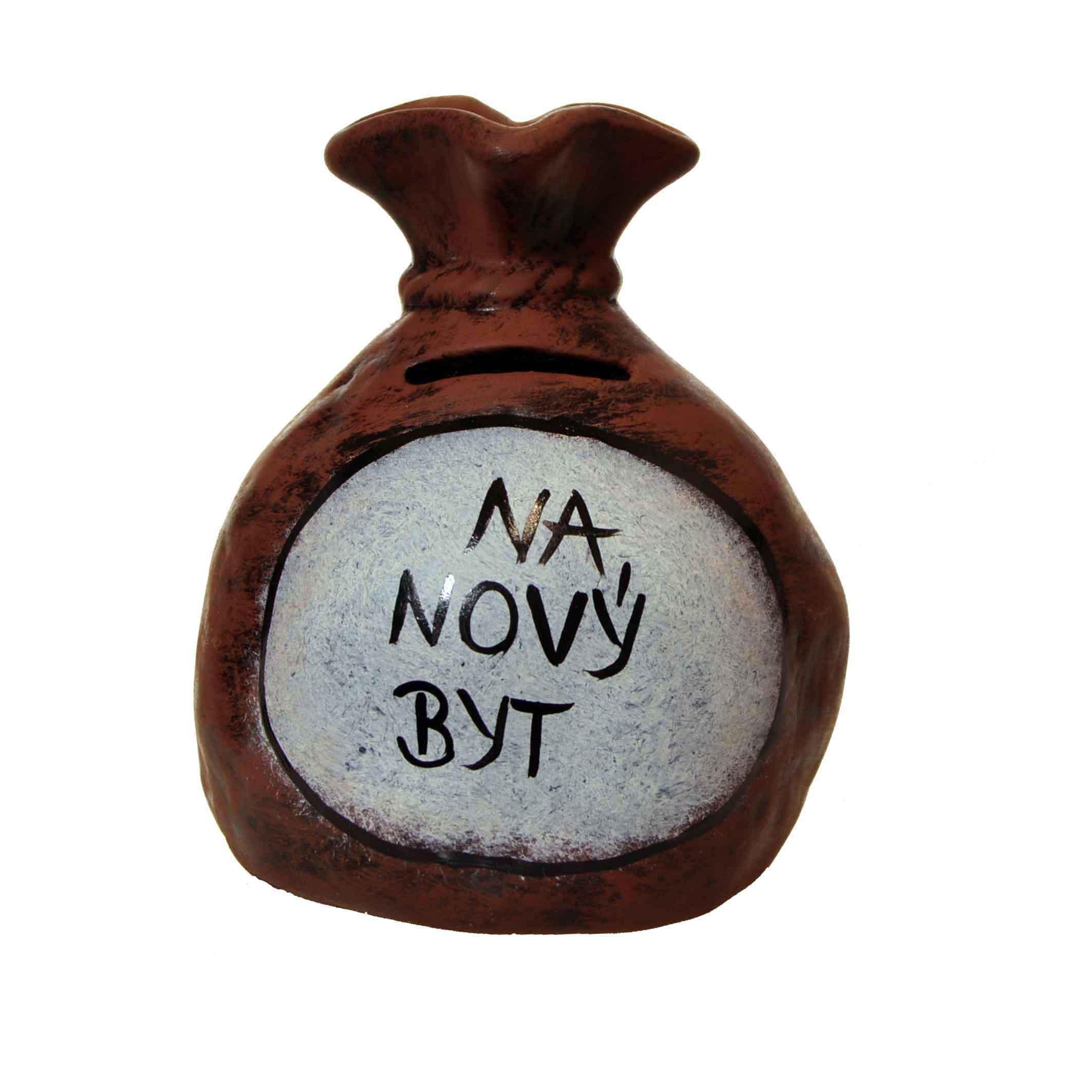 Originálna keramická pokladnička s nápisom: na nový byt je skvelý darček na každú príležitosť.