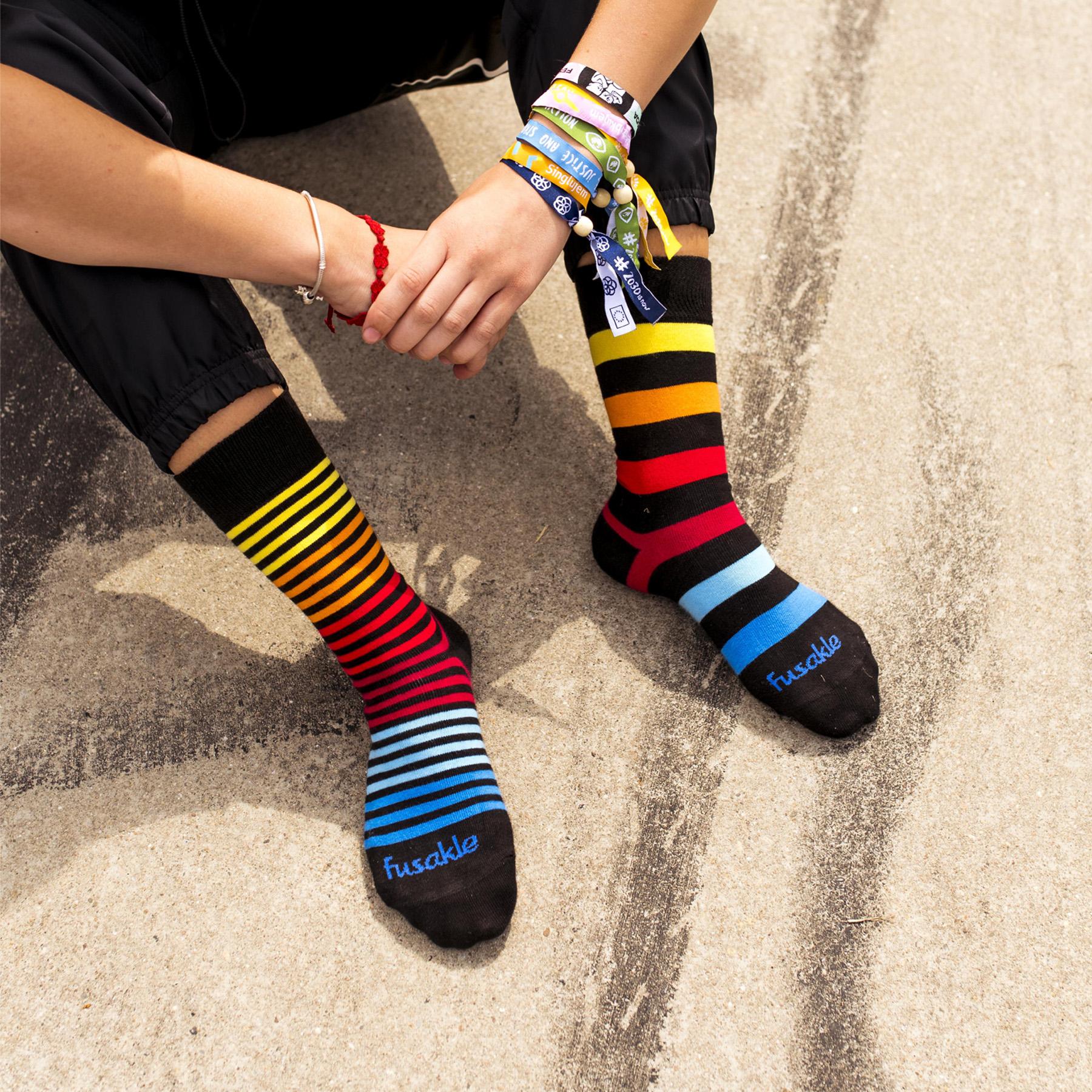 Veselé Fusakle, ktoré ti vyčaria úsmev na tvári, určené na každodenné nosenie. Fusakle je značka originálnych dizajnových ponožiek navrhovaná a vyrábaná s láskou šikovnými a milými ľuďmi na Slovensku a v Česku. Fusakle sú pre všetkých, ktorí sa chcú baviť životom, majú chuť pomáhať druhým a odvahu byť iní, no stále samými sebou.