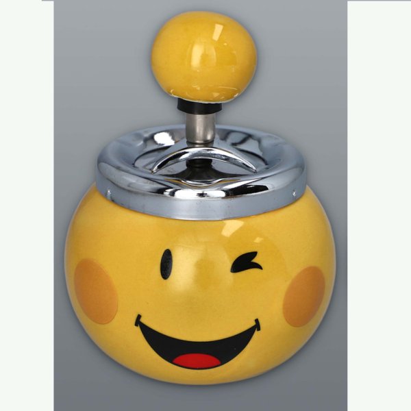 Popolník rotačný - Smajlík   je nie len jednoduchým riešením pre fajčiarov, ale aj štýlovým doplnkom do každej domácnosti či kancelárie. Vyrobený z keramiky a nerezovej ocele, tento popolník je navrhnutý s ohľadom na dlhotrvajúcu životnosť a jednoduchú údržbu. Jeho rotačný dizajn je účinným spôsobom, ako udržiavať čistotu a poriadok na vašom stole, bez ohľadu na to, či ste doma, v práci alebo na dovolenke. Stačí len jemne stlačiť a popol sa bezpečne a efektívne skryje do vnútornej časti popolníka. Zabudnite na nepríjemné fúkanie popola alebo neustále čistenie - s týmto popolníkom je to minulosťou! Popolník rotačný je dokonalou kombináciou funkčnosti a estetiky. Jeho moderný a minimalistický tvar pridá eleganciu do akejkoľvek miestnosti, zatiaľ čo jeho kompaktná veľkosť zaručuje, že sa hodí na akýkoľvek stôl alebo policu.