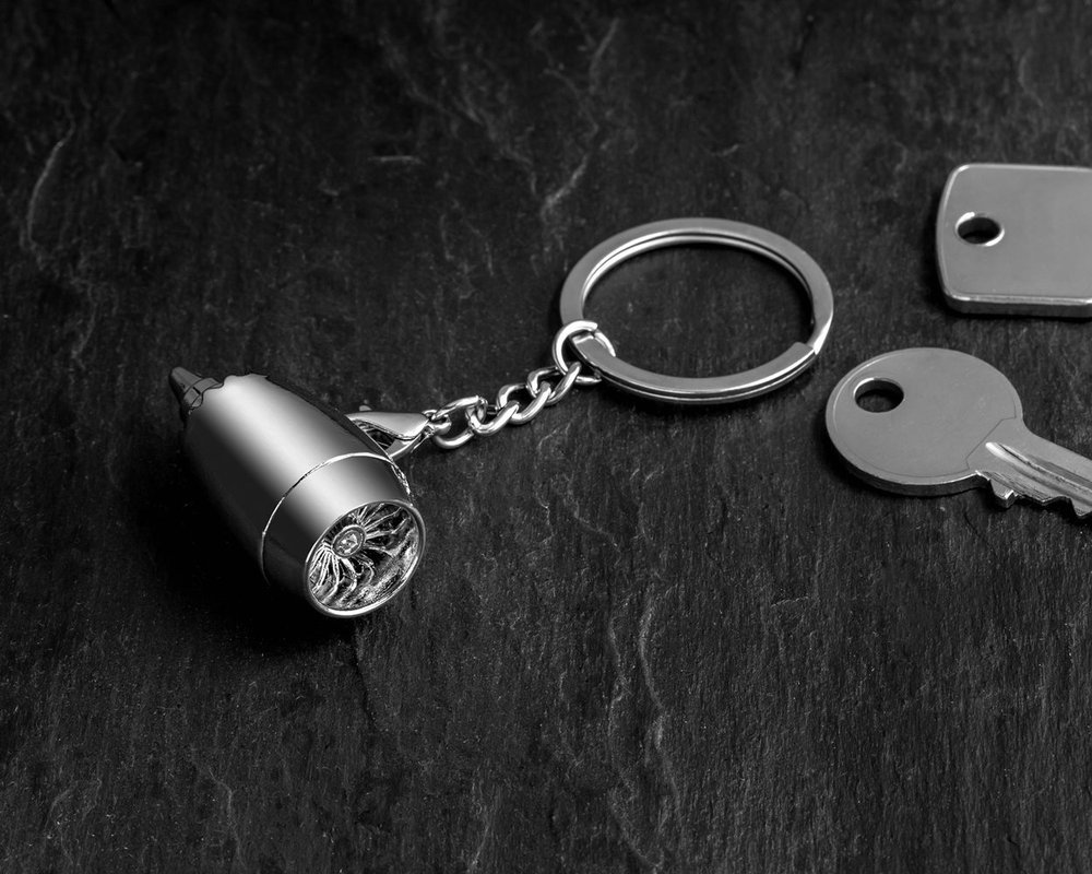 Módna a moderná kľúčenka v tvare leteckého prúdového motora pre vaše kľúče, prívesky.