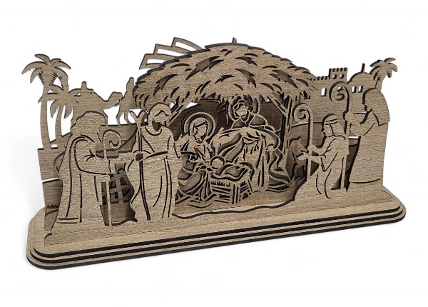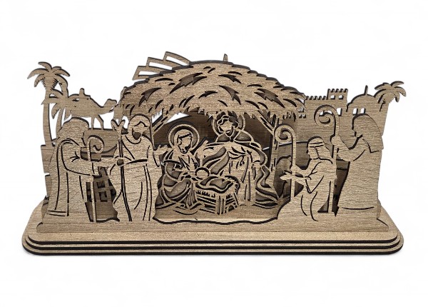 Betlehem je vyrobený z kvalitného masívneho dreva, zachovávajúceho prirodzenú kresbu materiálu 🌲. Vďaka tomu pôsobí autenticky, prírodne a veľmi útulne. Jemné vyrezávanie zvýrazňuje krásu príbehu a pridáva dekorácii hlboký symbolický rozmer – pripomenie hodnoty, na ktorých stojí vianočný čas: rodinu, pokoj a svetlo.