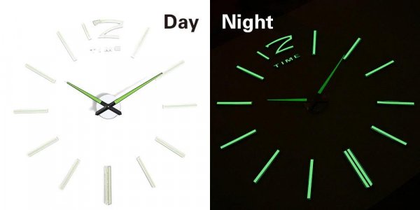 Samolepiace hodiny na stenu 50 - 60 cm fosforové