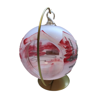 Guľa je vyrobená z kvalitného skla, doplnená o stabilný kovový stojan so zlatým povrchom. Pri zapálení sviečky vytvára príjemné teplé svetlo a romantickú atmosféru, ideálnu pre sviatočné večery či ako darček pre milovníkov zimnej elegancie. 🎁