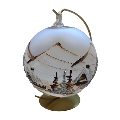 Nechajte sa uniesť pokojom zimných nocí so sklenenou guľou na sviečku. Táto ručne maľovaná dekorácia zachytáva zasneženú krajinu, stromčeky a tiché kúzlo zimy. V kombinácii so svetlom sviečky vytvára jedinečnú hru odtieňov a odleskov, ktoré naplnia váš domov teplom a pohodou.