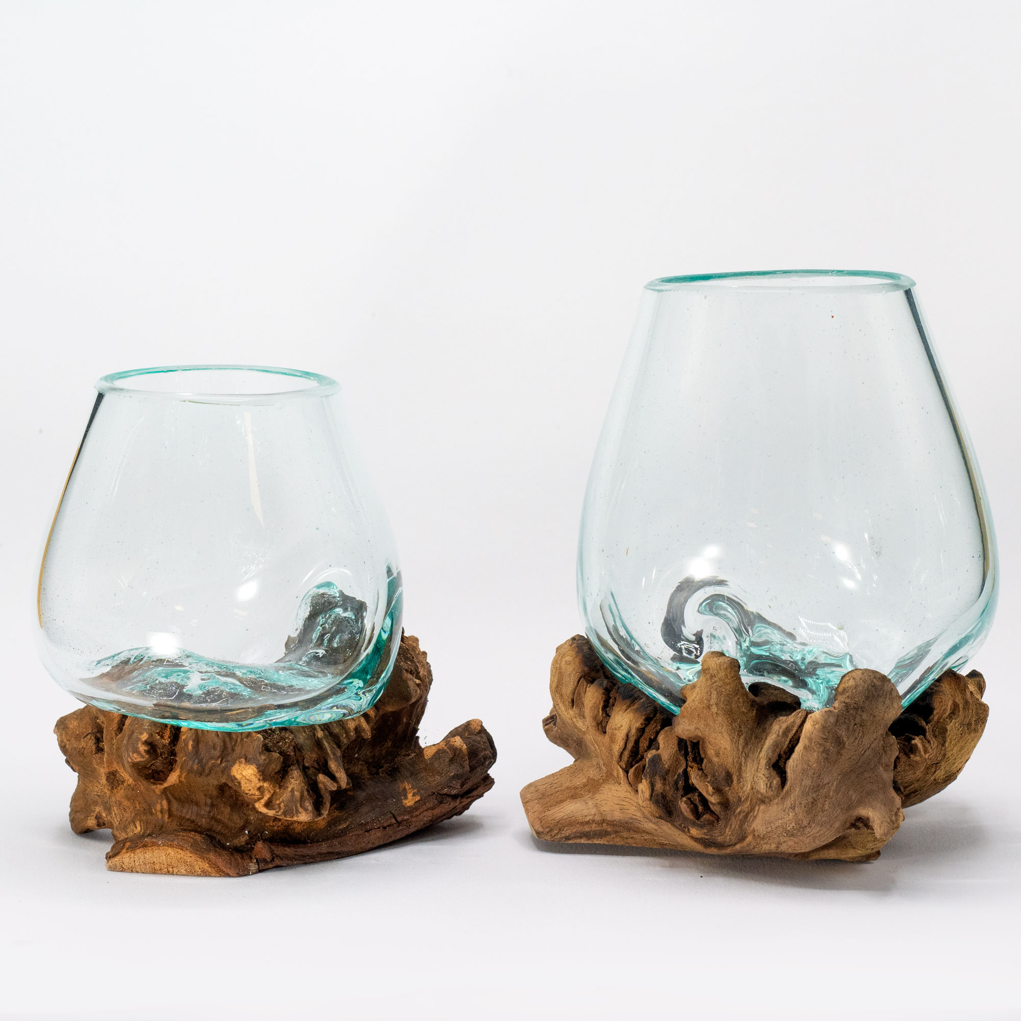 Spojenie prírody a elegancie 🌱. Táto sklenená váza na dreve je výsledkom ručnej práce, pri ktorej sa roztavené sklo tvaruje priamo na kúsok prírodného dreva 🌳. Vďaka tomu je každý kus absolútny originál s jedinečným tvarom a štruktúrou.