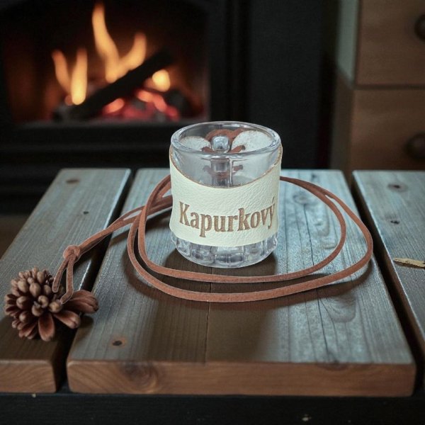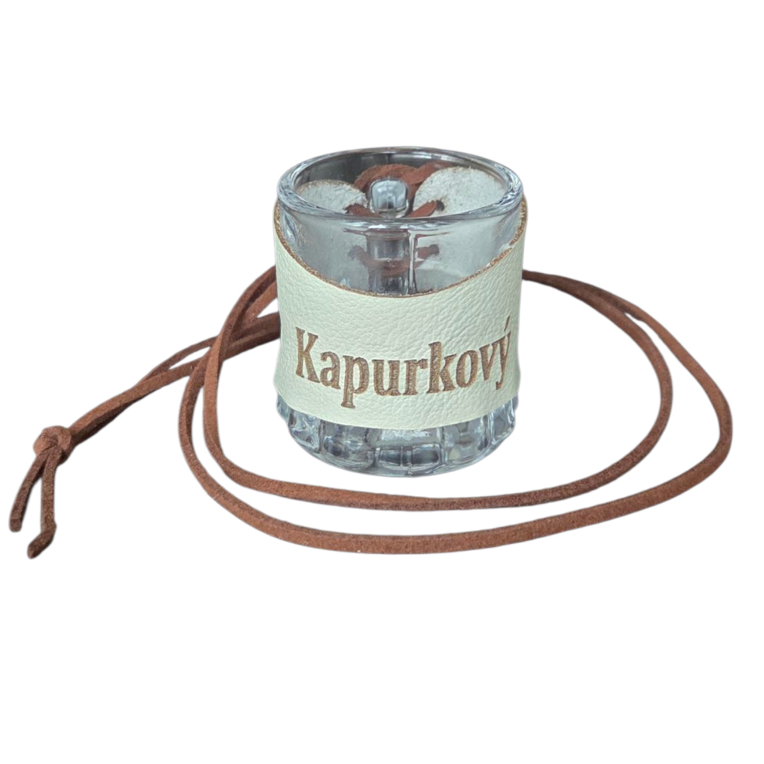 Sklenený štamperlík s koženým obalom – Kapurkový