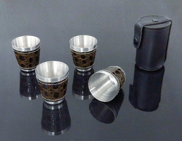 Štamperlíky DESIGN nerezové 4ks 30 ml v koži
