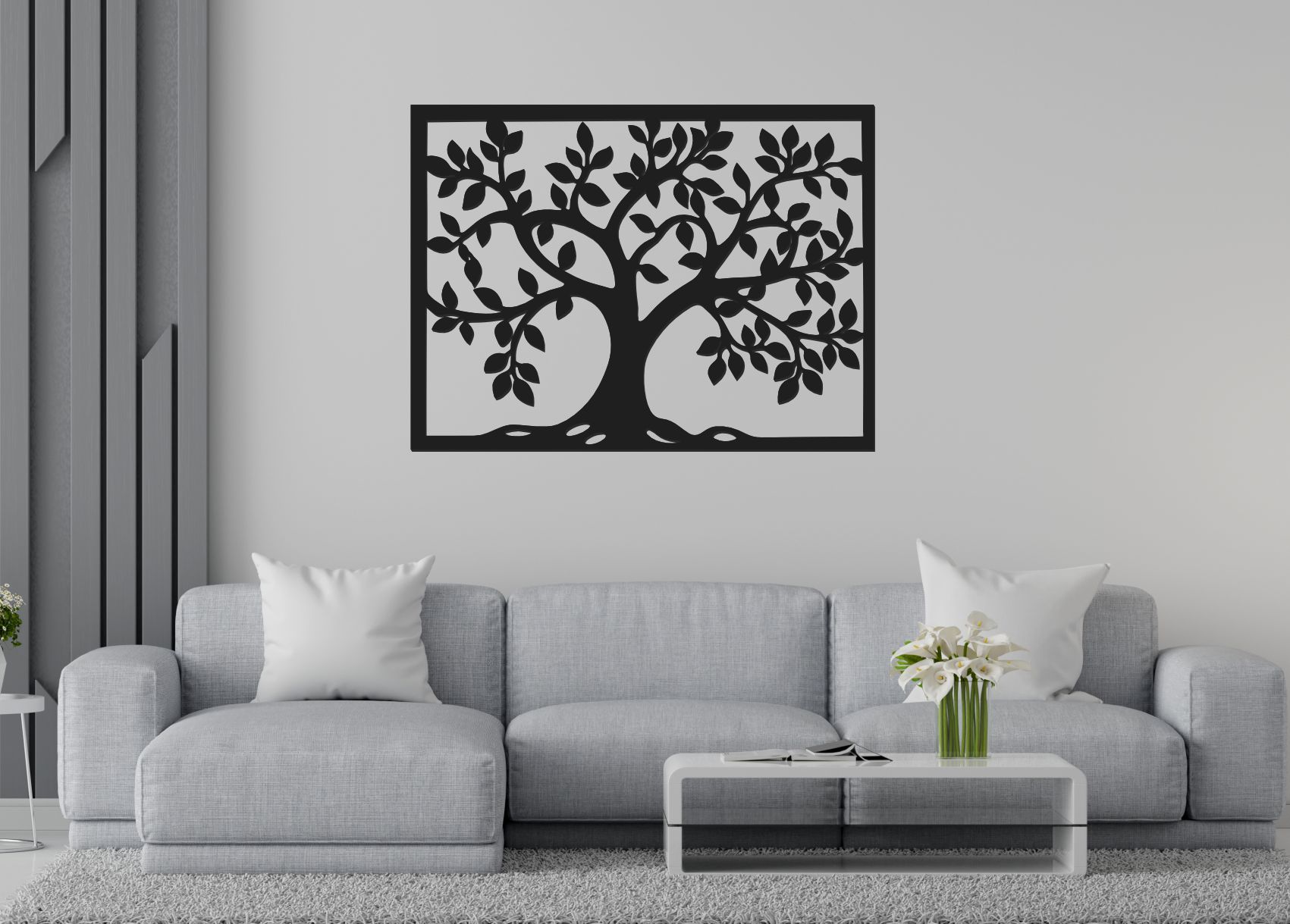 Strom života na stenu v horizontálnom ráme prináša do interiéru pocit stability a vyváženosti. Tento model pôsobí viac ako obraz než klasická nástenná dekorácia. Uzavretý rám zvýrazňuje kompozíciu stromu a dodáva celku čistý, moderný vzhľad.