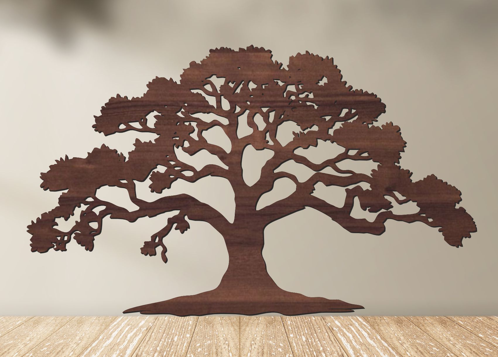 Vyrobený je z kvalitného 3 mm HDF dreva pomocou precízneho laserového rezania. Detailné spracovanie vetiev vytvára elegantný vizuálny efekt aj v jednovrstvovom prevedení.