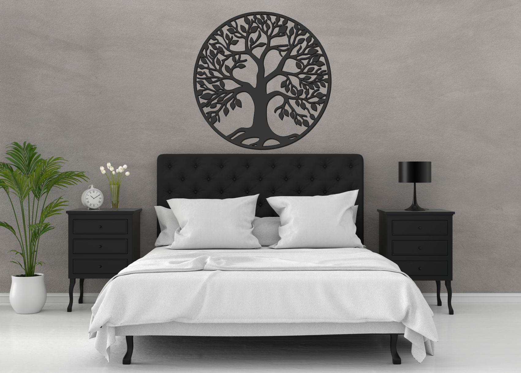Tento strom života na stenu predstavuje vyváženú kombináciu detailu a čistoty dizajnu. Koruna je rozložená vzdušne, vetvy pôsobia prirodzene a kruhový rám symbolizuje jednotu, stabilitu a nekonečný kolobeh života.
