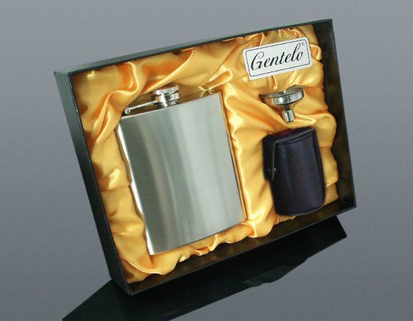 Súprava GOLD SATIN ploskačka 240 ml + 4 ks štamperlíkov 30 ml v puzdre