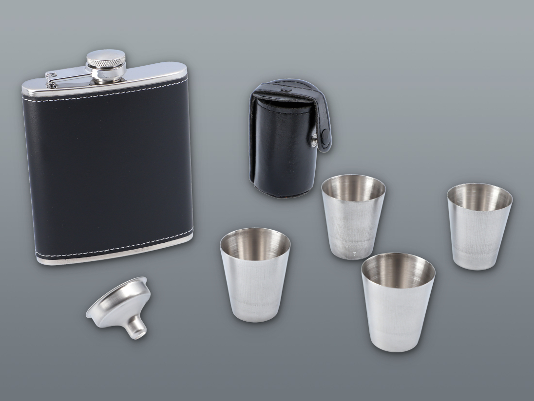 - Ploskačku z nerezu potiahnutá čiernym dizajnom 210ml